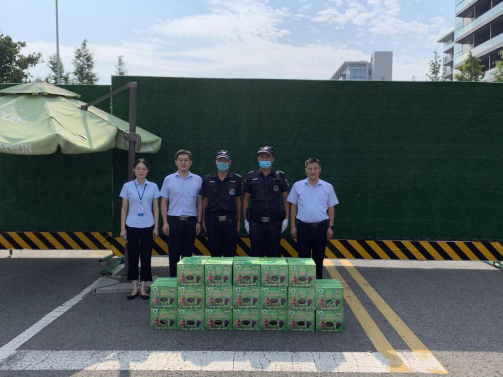 集团领导先后来到太湖度假区、木渎镇、金庭镇各个岗点,为一线保安员、保洁员送上饮料、水果和夏季防暑药品等慰问品,让员工在炎炎夏日中感到丝丝清凉。