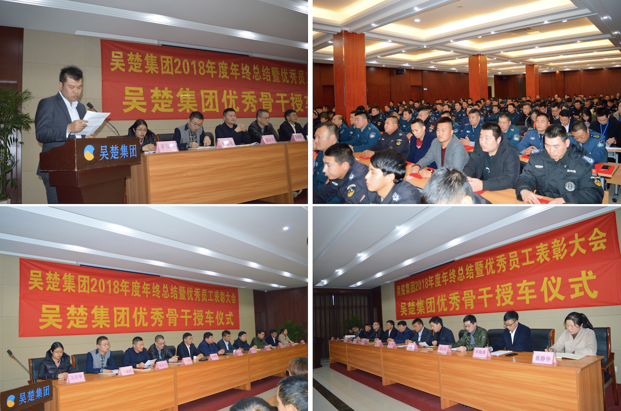 2019年1月19日下午13时,苏州吴楚集团有限公司2018年度年终总结暨员工表彰大会及骨干授车仪式在jc聚彩保安培训基地隆重举行。集团公司各部门负责人就吴楚集团2018年各项工作情况及2019年工作部署作了总结汇报。各员工代表作了深刻的思想交流和工作分享。集团总经理毕坤明就2018年取得的骄人成绩及2019年集团战略目标作出了重要讲话。